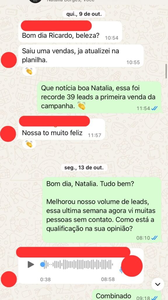 Os leads são entregues em tempo real via aplicativo de automação e também registrados em uma planilha automatizada com status de funil, para que você consiga acompanhar seu processo comercial.